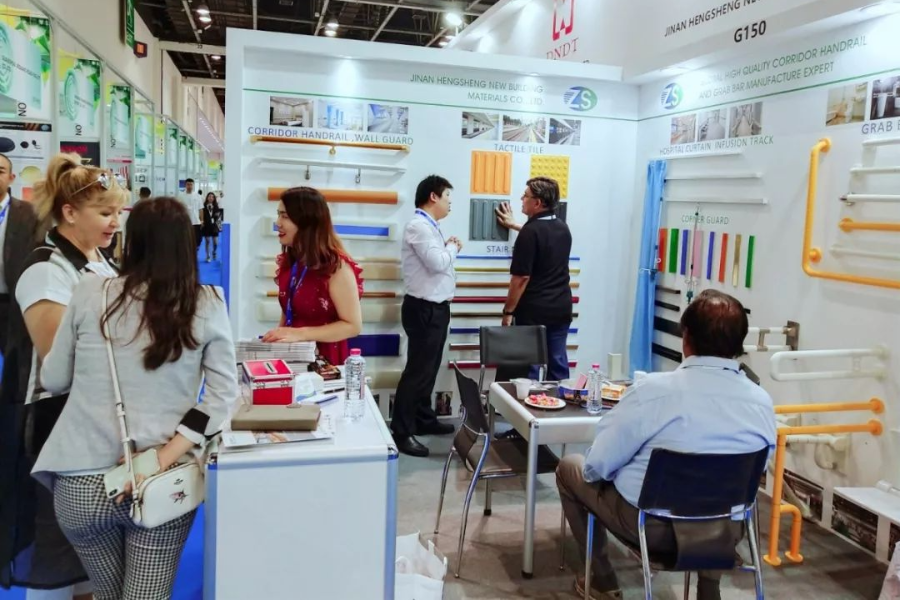 2018年11月26日-11月29日,恒生防護攜全系產品參展阿聯酋迪拜世貿中心舉辦的《2018中東迪拜五大行業(Big5)建筑建材展》。展會現場,恒生防護產品品類、質量得到海外客戶的高度評價。來自阿聯酋無障礙行業人士講解到“恒生防護HEALTH SEASONS”品牌在當地已被行業人士熟識,產品質量得到好評,展會現場來自印尼及迪拜當地的多位客戶購買恒生防護產品,并對產品給予肯定。